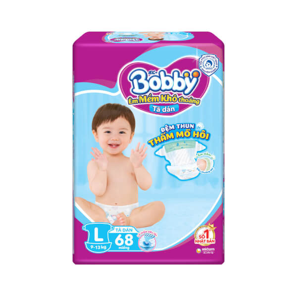 Tã dán Bobby Jumbo siêu thấm khô thoáng với ứng dụng công nghệ tiên tiến từ Tập đoàn Unicharm (Nhật Bản), và thun hông linh hoạt ôm vừa vặn giúp chống tràn hiệu quả sẽ cho bé những giờ phút tự do thoải mái khám phá thế giới.