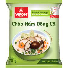 Cháo Nấm Đông Cô VIFON Cháo thật với túi nấm thật, hạt cháo mềm mịn thơm ngon đan xen với vị ngọt thanh tự nhiên của nấm đông cô. Cháo ăn liền Vifon Nấm Đông Cô 70g cung cấp hàm lượng dưỡng chất đầy đủ an toàn cho sức khỏe, là lựa chọn không thể hoàn hảo hơn cho bạn trong những ngày ăn chay. Bảo quản nơi khô mát, tránh ánh sáng trực tiếp Hạn sử dụng 9 tháng kể từ ngày sản xuất Sản xuất tại Việt Nam