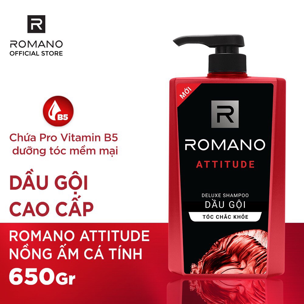 Dầu gội hương nước hoa Romano Attitude Dầu gội cao cấp Romano Attitude có công thức chuyên biệt dành cho nam với thành phần Pro Vitamin B5 cho mái tóc sạch, mát và chắc khỏe. Dầu Gội Cao Cấp Cho Nam Romano Attitude là sự kết hợp của các thành phần tự nhiên, lấy cảm hứng từ hương nước hoa cho hương thơm sảng khoái, mát lạnh và nam tính sẽ cho bạn phong cách trẻ trung, năng động và quyến rũ. Dầu gội được chứng minh là không hại da đầu, bạn chỉ cần nhẹ nhàng gội Romano với nước, massage nhẹ nhàng rồi xả lại là đã có một mái tóc chắc khỏe, đầy sức sống. Sản phẩm thích hợp cho mọi loại tóc.