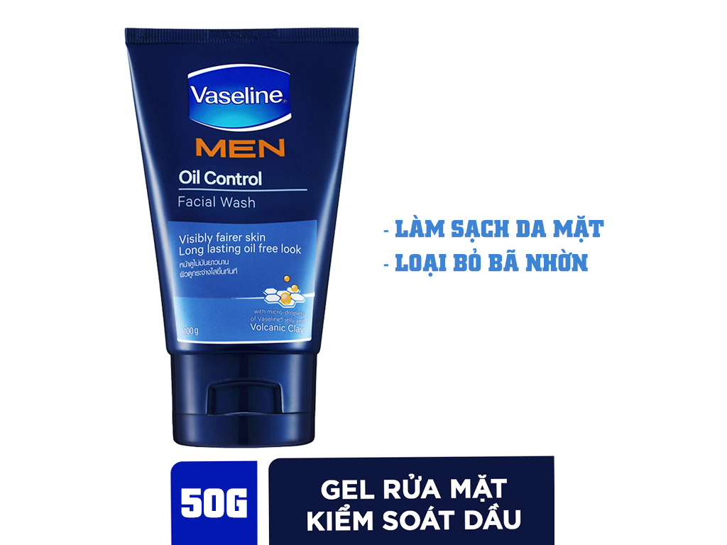 Sữa rửa mặt thương hiệu Vaseline được chiết xuất từ các thành phần thiên nhiên. Gel rửa mặt kiểm soát dầu Vaseline Men 50g với hoạt chất kiểm soát nhờn, vitamin và khoáng chất, giúp loại bỏ lượng dầu thừa cho da ít nhờn hơn, giảm sự xuất hiện của mụn.