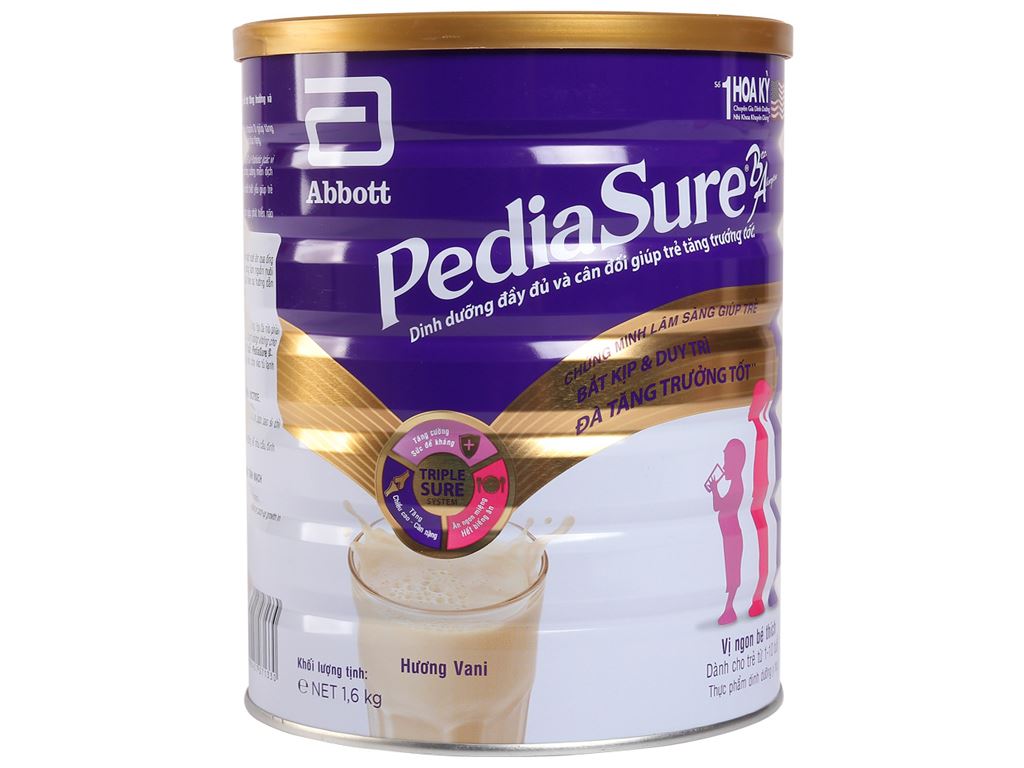 Sữa bột PediaSure BA cùng với chế độ dinh dưỡng hàng ngày giúp trẻ phát triển nhanh và tốt hơn về cân nặng, chiều cao, giảm nguy cơ viêm nhiễm đường hô hấp. Sữa bột Abbott PediaSure PediaSure BA hương vani lon 1.6kg (1 - 10 tuổi) thơm ngon, uống không ngán