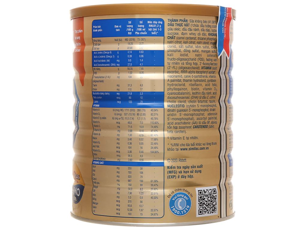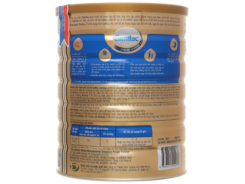 bộ và sức đề kháng của trẻ. Ngoài ra, sữa bột còn bổ sung thêm canxi và protein cho bé cao lớn, khoẻ mạnh. Sữa bột Abbott Similac Eye-Q 4 Plus (HMO) hương vani lon 1.7kg (2 - 6 tuổi) lon lớn tiện dùng lâu dài