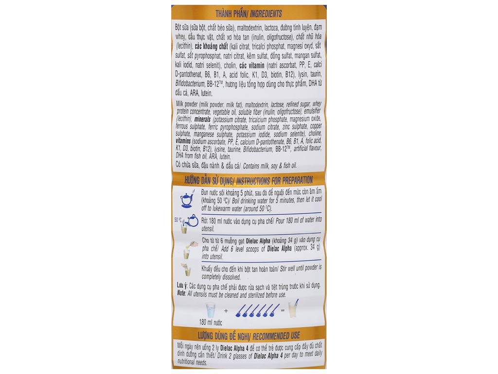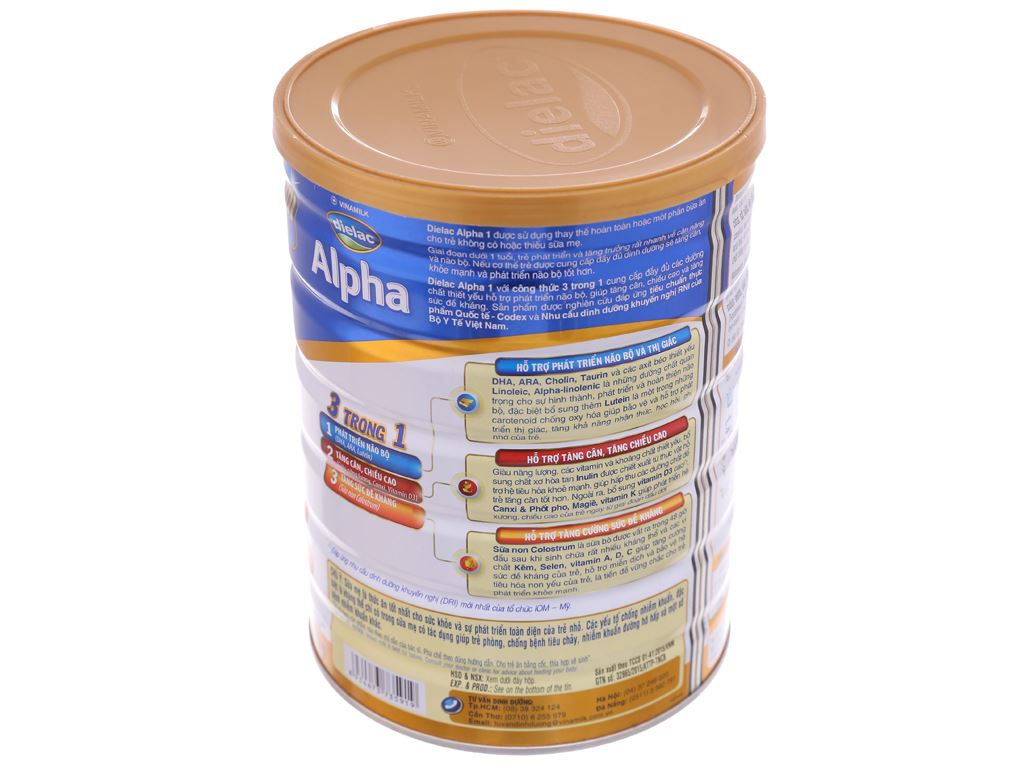 Dielac Alpha 4 với công thức 3 trong 1 cung cấp đầy đủ các dưỡng chất thiết yếu hỗ trợ phát triển não bộ, giúp tăng cân, chiều cao và tăng sức đề kháng. Sản phẩm được nghiên cứu đáp ứng Nhu cầu dinh dưỡng khuyến nghị RNI của Bộ Y Tế Việt Nam.