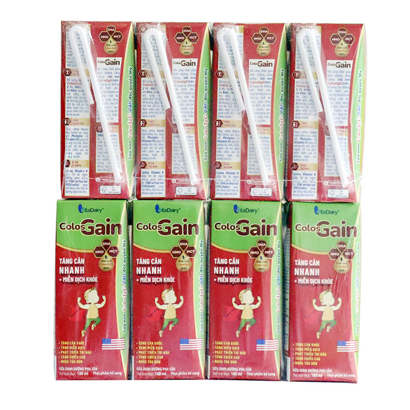 Sữa Colos Gain với công thức đột phá mới, được bổ sung nguyên liệu sữa non ColosIgG 24h nhập khẩu độc quyền từ Mỹ giúp trẻ tăng cường miễn dịch, hạn chế ốm vặt hỗ trợ cải thiện tình trạng sức khỏe cho trẻ gầy còm. Sản phẩm dạng pha sẵn 180ml thơm ngon bổ dưỡng và tiện lợi các bé rất thích.