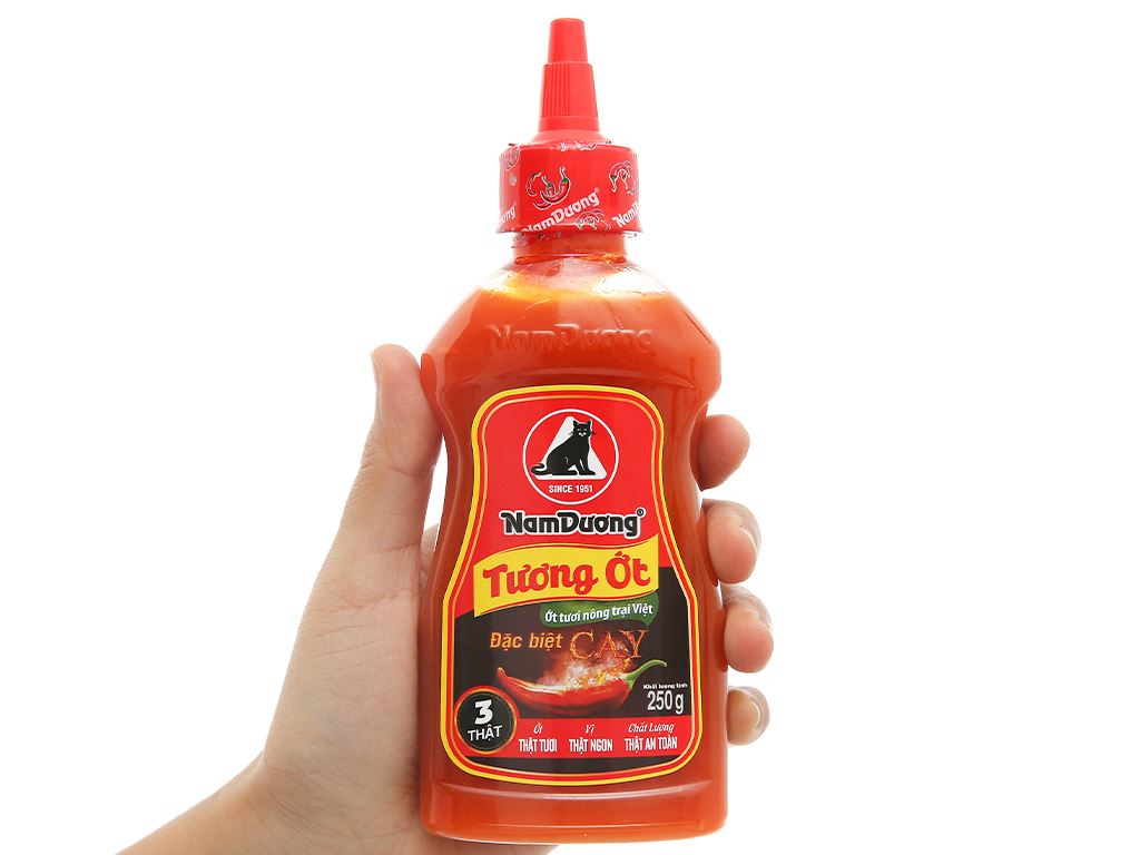 Được chế biến từ tỏi, ớt nguyên chất, có hương vị đặc biệt thơm ngon, màu sắc bắt mắt đến từ tương ớt Nam Dương. Tương ớt Nam Dương cay đặc biệt chai 250g với màu đỏ của tương tự nhiên mịn màng, mùi thơm dịu độc đáo và hương vị cay ngon hấp dẫn, tuyệt đối không sử dụng vị cay nhân tạo.